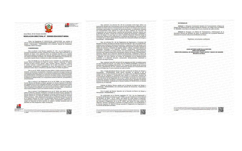 Después de años de arduo trabajo el Hospital de Huaycán obtuvo la Autorización Sanitaria del Ministerio de Salud, para el Funcionamiento del Banco de Sangre tipo I B, que nos permitirá realizar donaciones autólogas, campañas voluntarias de sangre y medicina transfusional, garantizando la calidad de atención y unidades de sangre con garantía y seguridad para nuestros pacientes.
