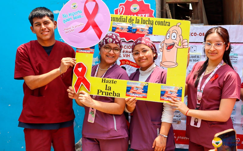 Al conmemorarse el Día mundial de la Lucha conta el Sida, el Equipo de Obstetricia del Hospital de Huaycán realizo una campaña preventiva de tamizaje de VIH y sífilis en el Mercado La Arenera, donde se hizo el descarte a mas de cien personas de la Comunidad, con el objetivo de sensibilizar, detectar e iniciar un tratamiento antirretroviral oportuno de manera gratuita.