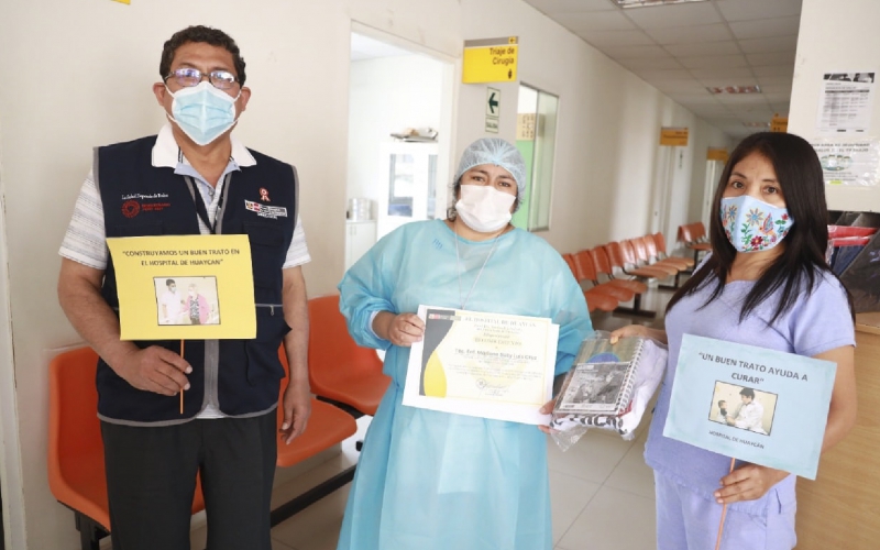 Por otra parte, el titular del nosocomio, Dr. Luis Manco Malpica otorgó un reconocimiento a los profesionales de la Salud del Hospital de Huaycán en base a una encuesta de satisfacción en el proceso de atención al usuario realizada por el Área de Gestión de la Calidad a cargo de Lic. Doris Pagan Meza donde los pacientes y/o usuarios del nuestros servicios identificaron a algunos médicos, licenciados y técnicos en enfermería entre otros, por su buen trato a los usuarios de los servicios de salud tanto de hospitalización, emergencia de cirugía, sala de operaciones y obstetricia.